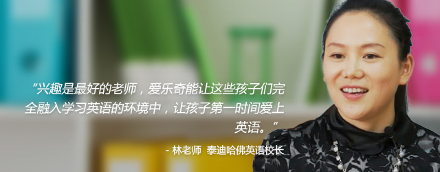 泰迪哈佛英语的负责人林校长是一位拥有近十年教龄的80后。丰富的一线教学经验让她顺利地度过了创业的适应阶段,更多地是思考如何带领学校创新。“泰迪的教学对象从幼儿到初中,以后还会涉及到高中,这样一条跨度较大的成长链条需要一套完整系统而不失生动的教材。我认为爱乐奇英语这种立体化互动教学非常有吸引力,而且是未来的一种趋势,所以毫不犹豫地引进了。”