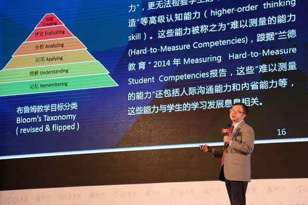 华东师范大学副校长任友群教授以非常具有前瞻性的观点——富尔报告开场:未来的文盲,不再是不识字的人,而是没有学会怎样学习的人。当前影响学习力有两大因素:其一,数字鸿沟:直接影响知识流量和知识增量,间接影响知识总量;其二,评价欠缺:影响知识质量。任友群呼吁,互联网可以把评价体系做得更好一点,把现在问题非常多的评价体系能往前再好好推进一步。