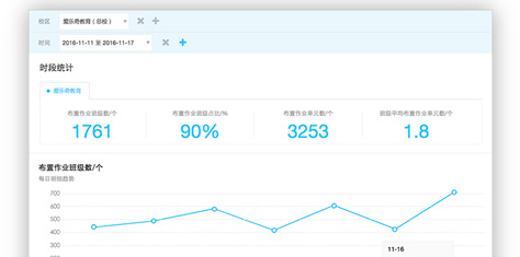 在线作业是爱乐奇学习平台主要的功能之一。通过校长平台,学校管理者可以方便地查看和统计某个时间段机构或校区的作业数据,对教学状况有个客观的评估,更能通过横向和纵向的比较,客观掌握教学情况。班级明细的导出功能,实现跟踪到班的精细化管理。
