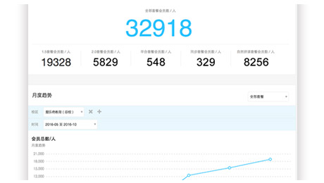 “会员总数趋势、每月新会员趋势、月度续费率趋势。”校长关心的这些直接经营数据,在校长平台以可视化的方式清晰的展现,还能实现不同校区的横向比较,为机构经营提供科学客观的数据支撑。