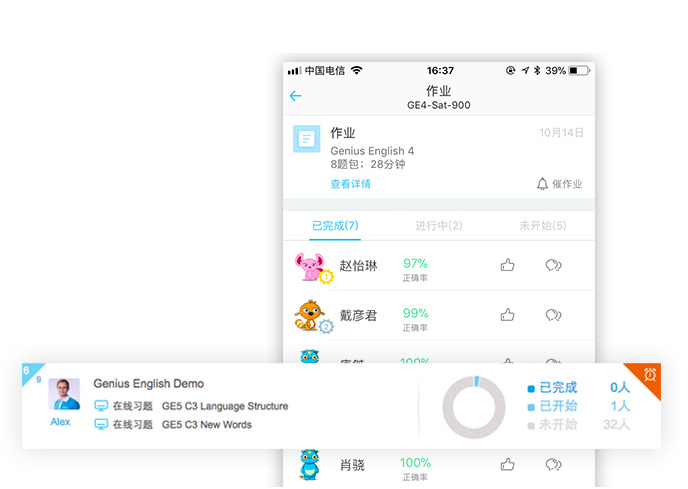 分析教学效果及个人学习情况,并及时方便地分享给家长。
