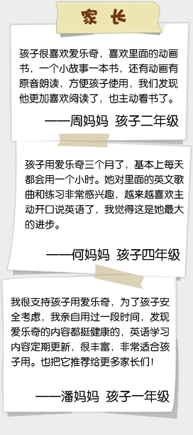 爱乐奇研发的学习应用,将学习益智性与游戏趣味性完美结合, 将听、说、读、写等重要的英语能力训练以妙趣横生的形式展现。 不但能有效提高孩子自主学习的积极性的,也可以平衡孩子“学” 与“玩”的比重。